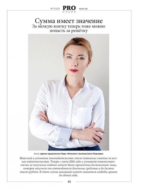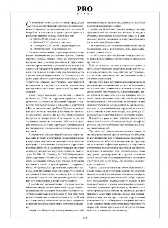 Публикация статьи "Взяточничество" Аксёнова А. Г. в журнале Pro Бизнес